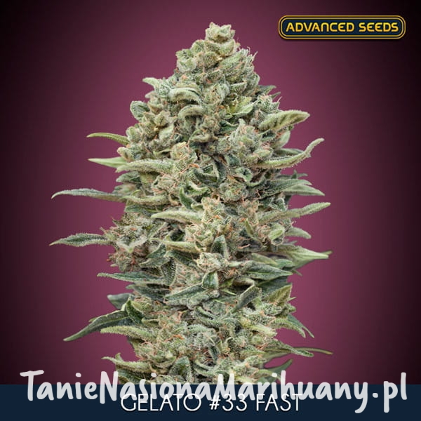 Gelato #33 Fast to odmiana, która, jak sama nazwa wskazuje, rośnie bardzo szybko i energicznie. Powstała na skutek skrzyżowania Sunset Sherbet z Girl Scout Cookies. Nie jest zbytnio wymagająca pod względem pielęgnacji, a daje przy tym obfite plony. Jej pąki wytwarzają spore ilości słodkiej żywicy. Ta superszybka hybryda może osiągać bardzo wysokie poziomy THC, a zatem jest to propozycja o naprawdę dużej sile.