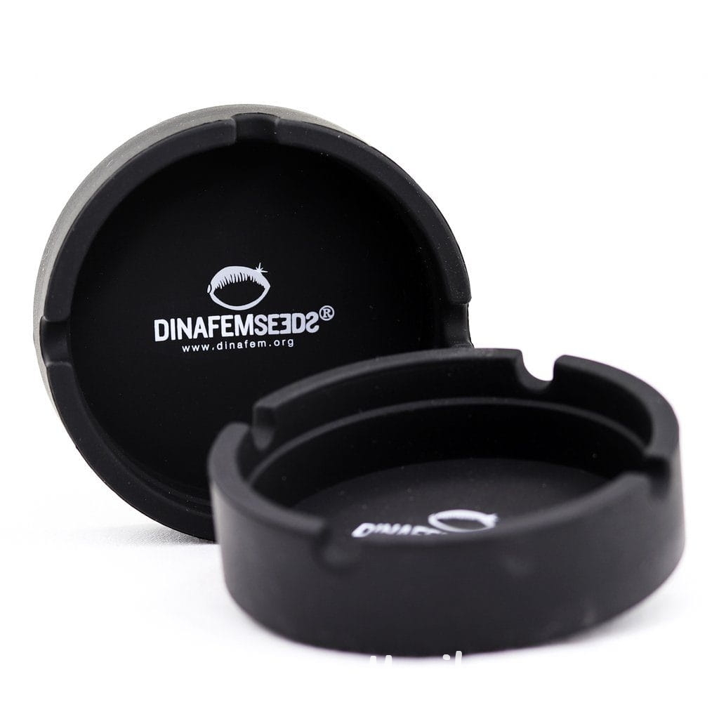 Popielniczka z Logo Dinafem, idealna dla tych, którzy kochają produkty Dinafem. Tym razem niesamowity bank nasion stworzył silikonową popielniczkę, która jest nierozerwalna, nieobrabialna, niezniszczalna i nie dająca się zepsuć, bez względu na to, ile papierosów w niej zgasisz. Poza tym jest elastyczna, lekka i bardzo miękka w dotyku. Ma kształt okrągły z 4 małymi wycięciami na papierosa.
